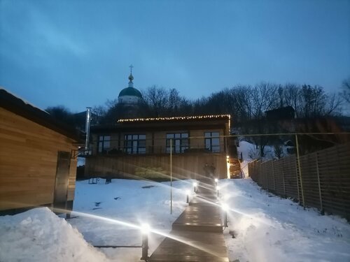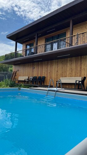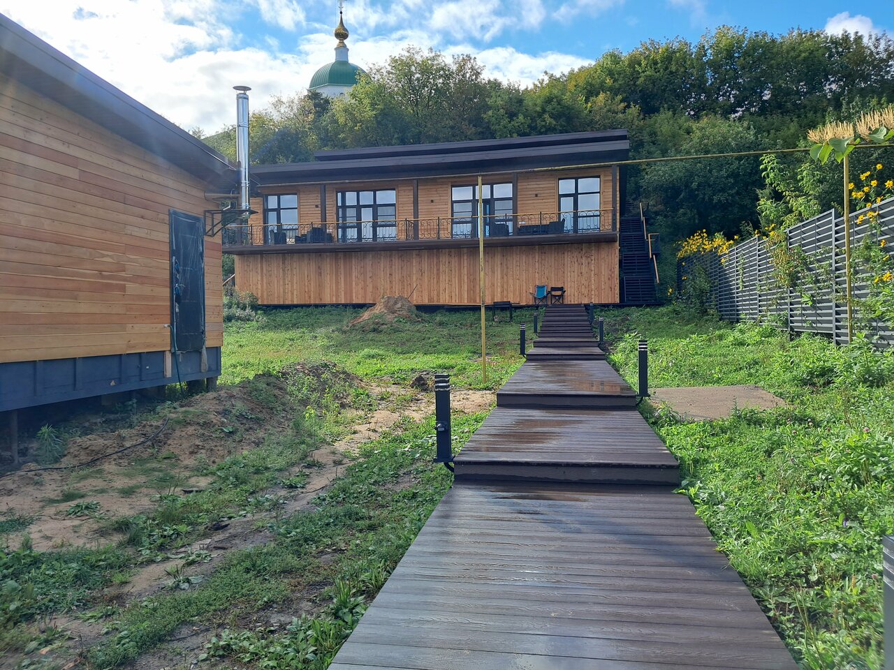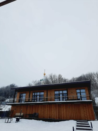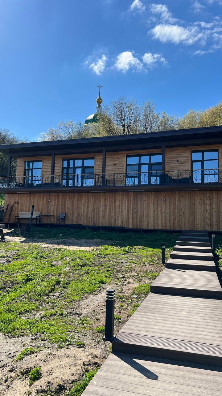 По какой причине перед въездом нет вывески 5🌟?! Ездили в Дивеево, проездом на сутки бронировали номер. Сказать, что я довольна, ничего не сказать. Я в восторге. Уютное, тихое место, с прекрасным видом на р.Ока. Номер потрясающий, 2х комнатный, уютная и тёплая атмосфера, все подобрано со вкусом, чисто и аккуратно. Есть всё необходимое. В номере сауна, невероятно круто расслабиться, после долгой дороги. Есть купель, чан с ароматными травами, тёплый бассейн, банный комплекс и шашлычная зона. Из развлечений, можно взять в аренду лодку или квадроцикл(мы не брали, просто есть такая услуга). Огромная благодарность владельцам, когда приехали, они были там. Наталья и Александр, вы большие молодцы. Очень всё достойно. Желаю развития, и чтоб о вас многие знали.