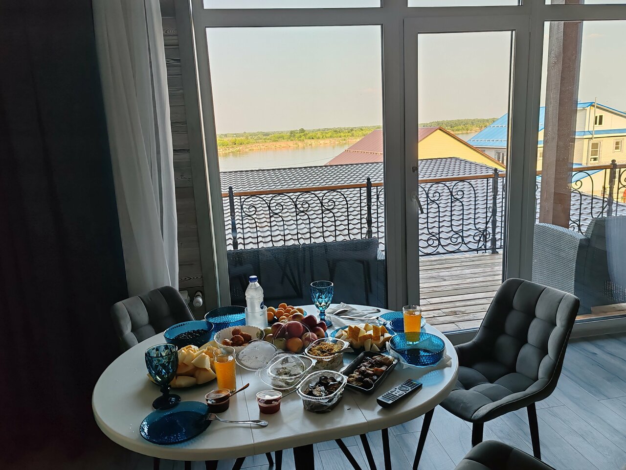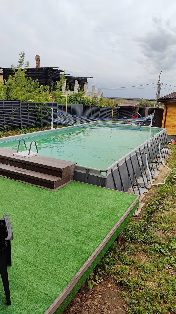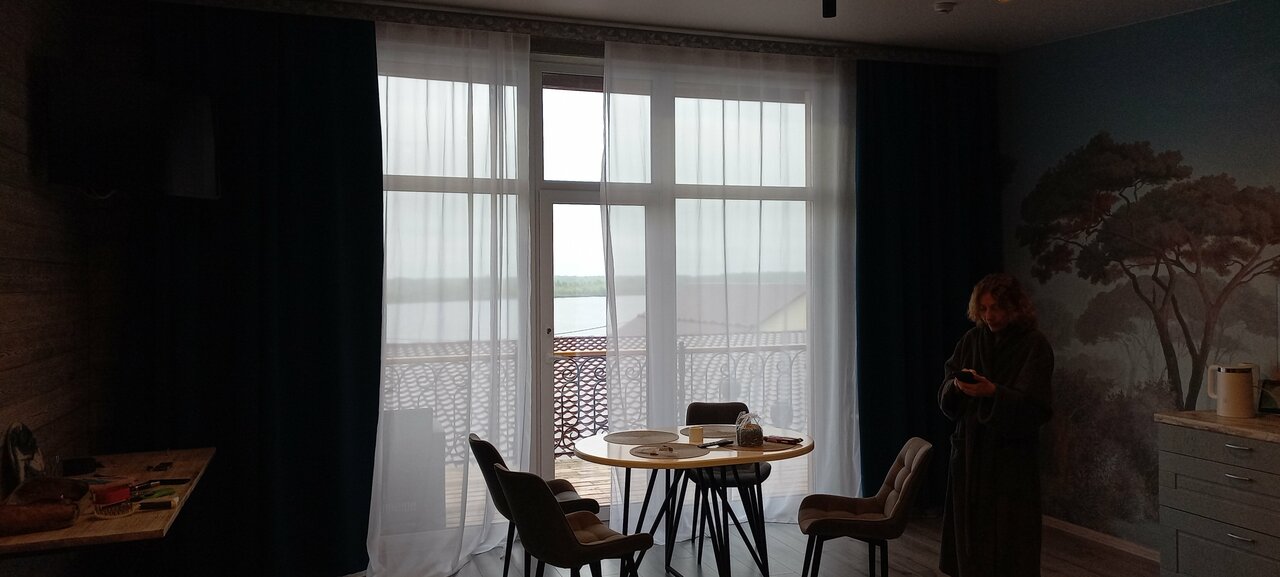 Бассейн - это отдельное спасибо🤗👍, в жаркие дни наслаждались чистой водичкой. Номер у нас был трехкомнатный, уютный, с дизайнерским, свежим ремонтом❤️🔥 В номере все необходимое, посуда, микроволновка духовка, холодильник, - можно жить подолгу комфортно. Душ отличный, без нареканий. Вид на Оку с лоджии замечательный🏞Хозяева отзывчивые, уборка вовремя. Магазины недалеко, но не в шаговой доступности, на машине 7 минут, но есть доставка.