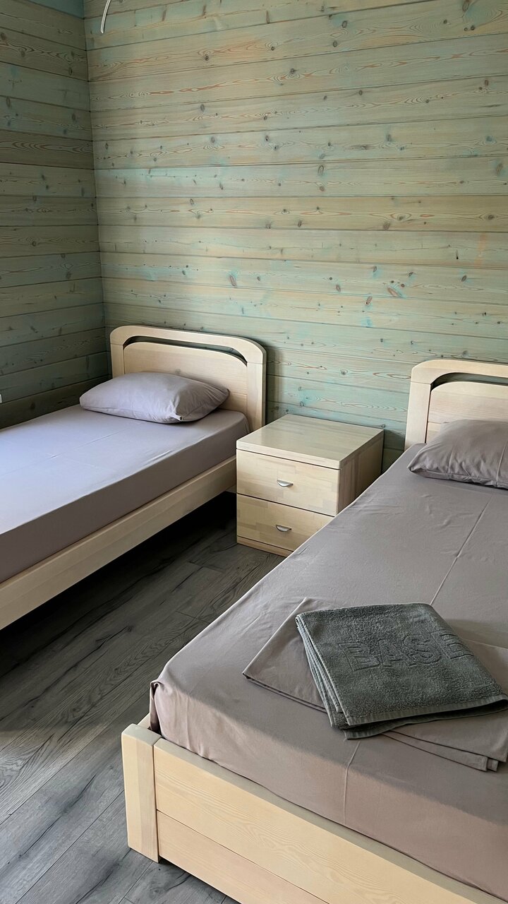 Из минусов возможно неудобные подушки, нам было непривычно на них спать и наверно немного свежее полотенца, чувствовался их износ.
